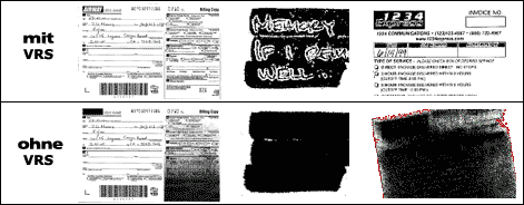 Kofax VRS ist ein Industriestandard zur automatischen Imagebearbeitung und -verbesserung. Durch die automatische Ausrichtung (Deskew) und Randentfernung (Auto Cropping) können unterschiedliche Papierformate in einem Stapel verarbeitet werden. Die Images werden in der tatsächlichen Größe an die nachgelagerte Applikation geliefert, dies spart wertvollen Speicherplatz. Zusätzlich werden Bilder in schlechter Qualität automatisch innerhalb eines vom Benutzer festgelegten Rahmens korrigiert, so dass auch die gleichzeitige Verarbeitung qualitativ unterschiedlicher Dokumente möglich ist und aufwendiges Vorsortieren der Batches entfällt. Ein intelligenter "Monitoring Agent" sorgt bei Bedarf für eine Real-Time Qualitätskontrolle: eine Änderung der Scanner-Einstellungen wirkt sich direkt am Bildschirm sichtbar auf das Image aus. |